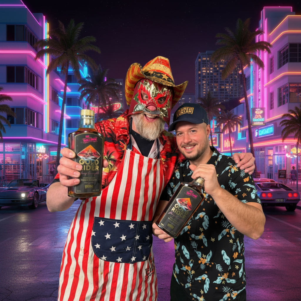 Ich hab mich mit BRONCOBUSTER zusammengetan und einen edlen Tropfen kreiert, der Eure Geschmacksknospen direkt nach Miami katapultiert.